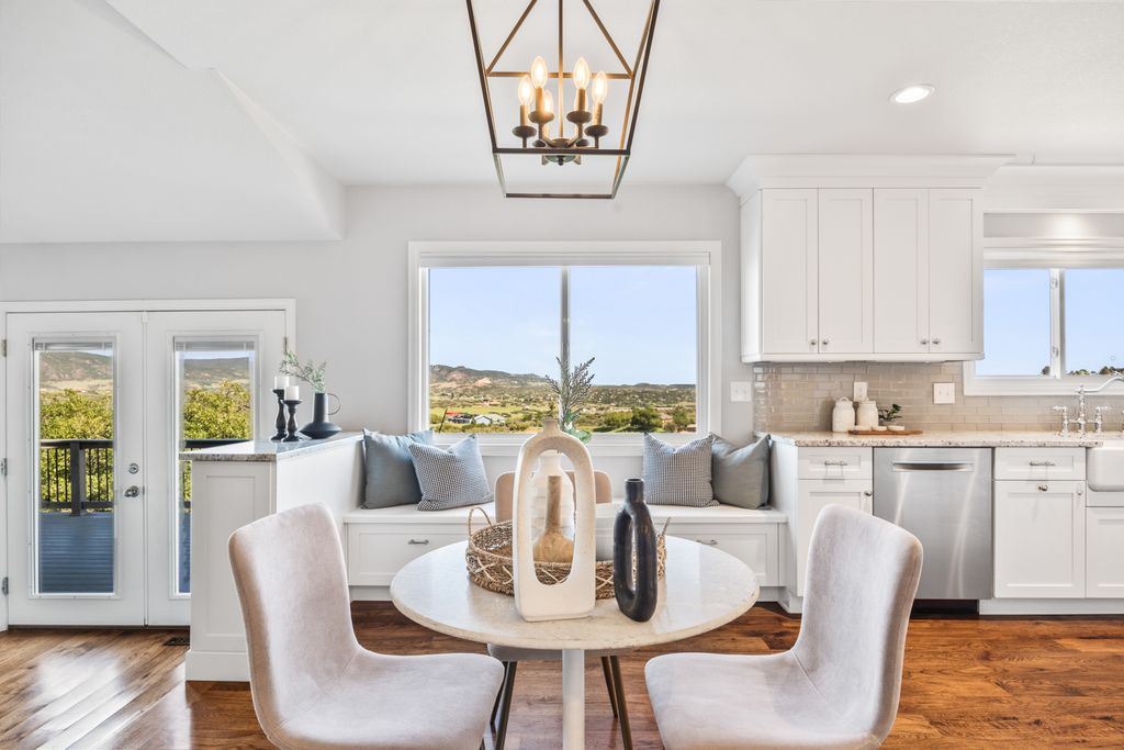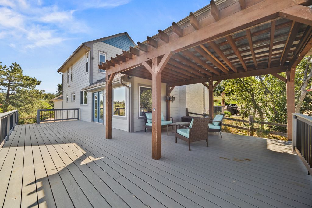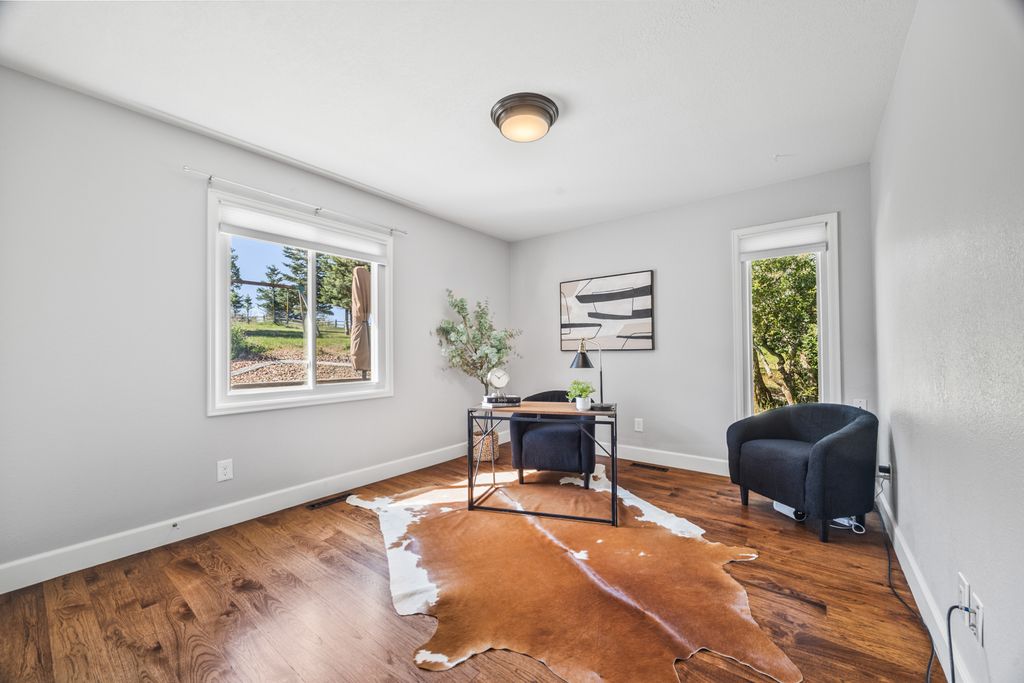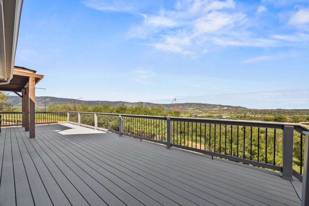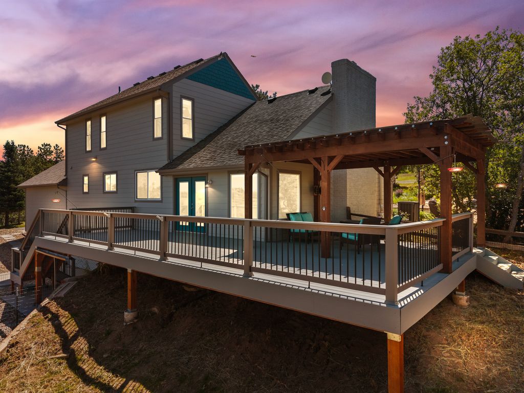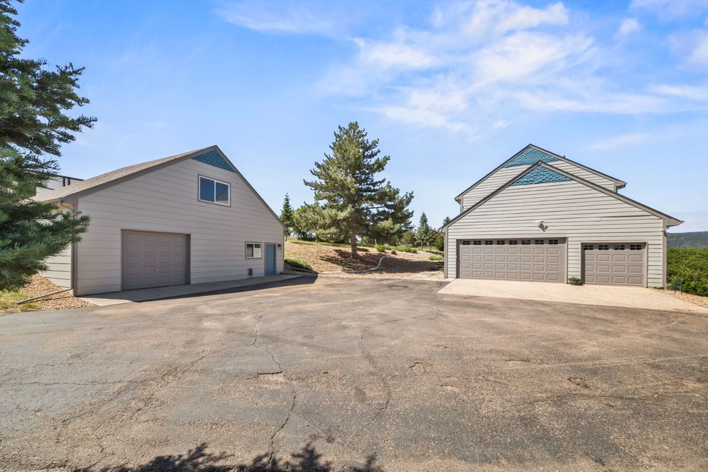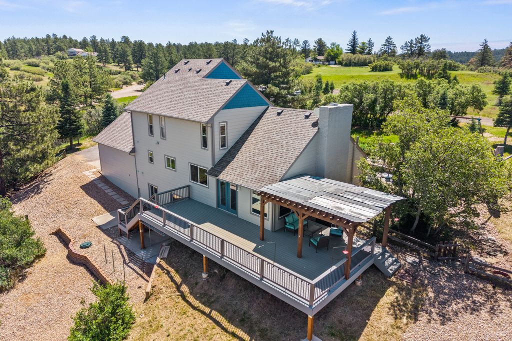 Imagine waking up to golden sunlight streaming through picture windows, the quiet rustle of trees, and the distant silhouette of the Rockies stretching across the horizon. You're not just buying a home—you're embracing a lifestyle of peace, space, and natural beauty, all on just under 5 acres of private, scenic land. This thoughtfully designed home invites you to slow down and savor every moment, whether you're enjoying a quiet morning on the deck or watching wildlife wander through the trees. The heart of the home is a chef’s kitchen, beautifully appointed with stainless steel appliances, granite countertops, and custom white cabinetry that extends to the ceiling with elegant crown molding. A large center island offers additional prep space and seating, while expansive counters make entertaining effortless. A built-in bench under a picture window creates the perfect nook for casual dining or morning coffee with a view. Warm wood floors flow throughout the main level, where a wood-burning fireplace anchors the cozy family room. The spacious mudroom includes custom built-ins, laundry, and a utility sink—ideal for Colorado’s four seasons. The vaulted primary suite is a true retreat, featuring a walk-in closet and a spa-like bath with dual marble vanity, heated tile floors, and a custom walk-in shower. A main-floor office and separate full bath offer flexibility for guests or multi-gen living. The finished walk-out basement includes a private bedroom, full bath, and a large flex space perfect for a gym, media room, or studio. Outside, enjoy a 3-car garage, a two-story workshop, and RV parking with a concrete pad. Zoning allows horses, with room to add a barn or outbuilding. All of this in the peaceful, picturesque community of Sedalia—where mountain views, open skies, and wildlife are part of everyday life.