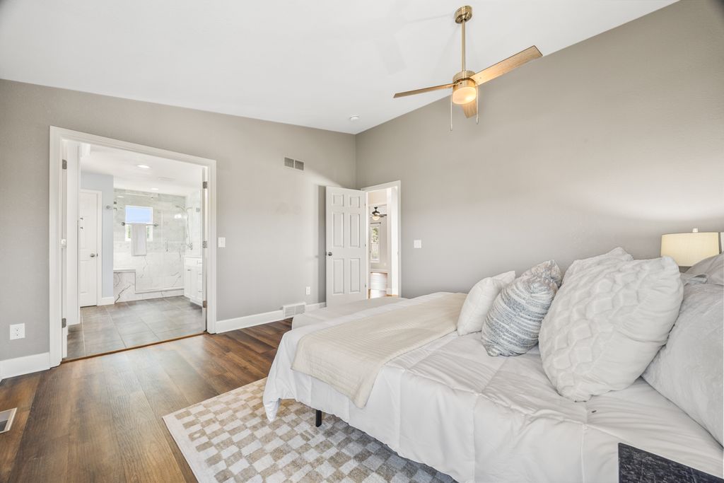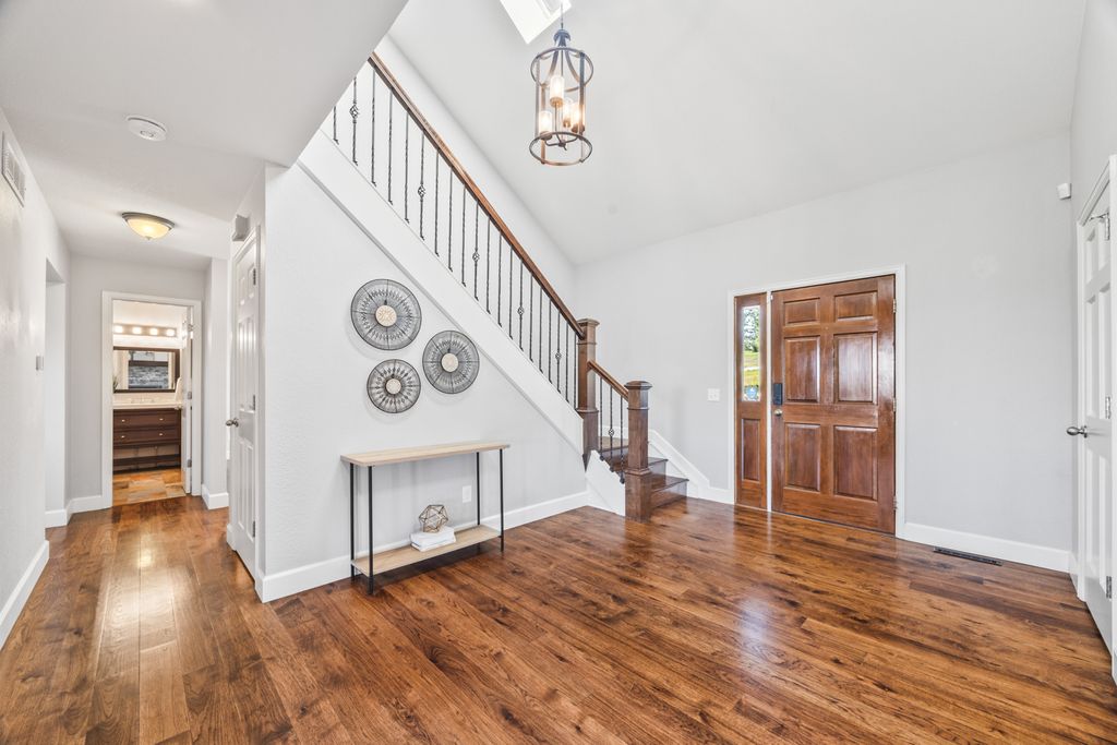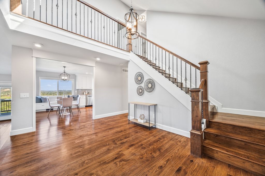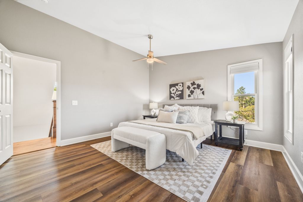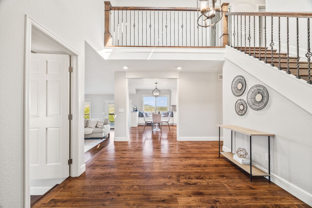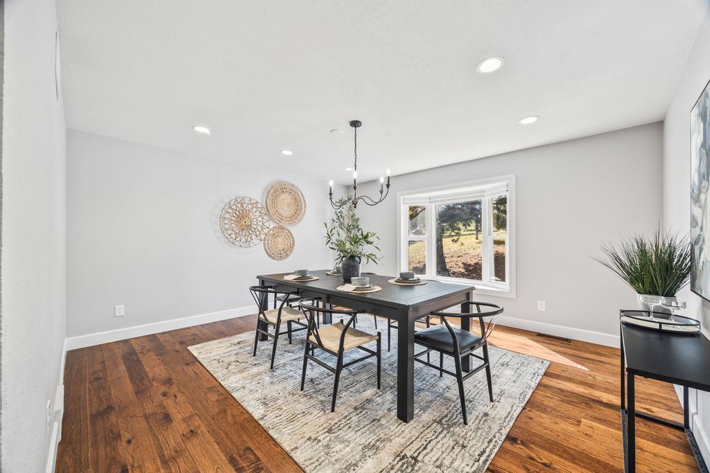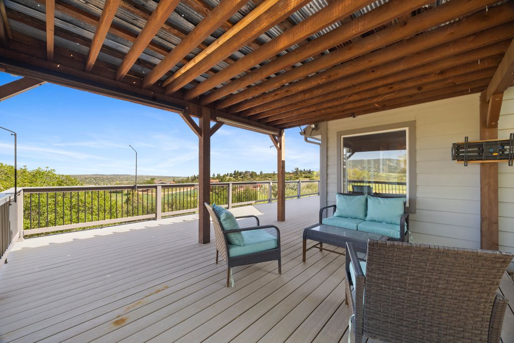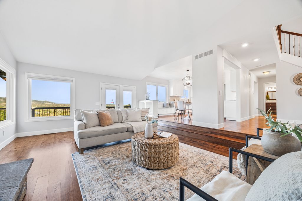 Imagine waking up to golden sunlight streaming through picture windows, the quiet rustle of trees, and the distant silhouette of the Rockies stretching across the horizon. You're not just buying a home—you're embracing a lifestyle of peace, space, and natural beauty, all on just under 5 acres of private, scenic land. This thoughtfully designed home invites you to slow down and savor every moment, whether you're enjoying a quiet morning on the deck or watching wildlife wander through the trees. The heart of the home is a chef’s kitchen, beautifully appointed with stainless steel appliances, granite countertops, and custom white cabinetry that extends to the ceiling with elegant crown molding. A large center island offers additional prep space and seating, while expansive counters make entertaining effortless. A built-in bench under a picture window creates the perfect nook for casual dining or morning coffee with a view. Warm wood floors flow throughout the main level, where a wood-burning fireplace anchors the cozy family room. The spacious mudroom includes custom built-ins, laundry, and a utility sink—ideal for Colorado’s four seasons. The vaulted primary suite is a true retreat, featuring a walk-in closet and a spa-like bath with dual marble vanity, heated tile floors, and a custom walk-in shower. A main-floor office and separate full bath offer flexibility for guests or multi-gen living. The finished walk-out basement includes a private bedroom, full bath, and a large flex space perfect for a gym, media room, or studio. Outside, enjoy a 3-car garage, a two-story workshop, and RV parking with a concrete pad. Zoning allows horses, with room to add a barn or outbuilding. All of this in the peaceful, picturesque community of Sedalia—where mountain views, open skies, and wildlife are part of everyday life.